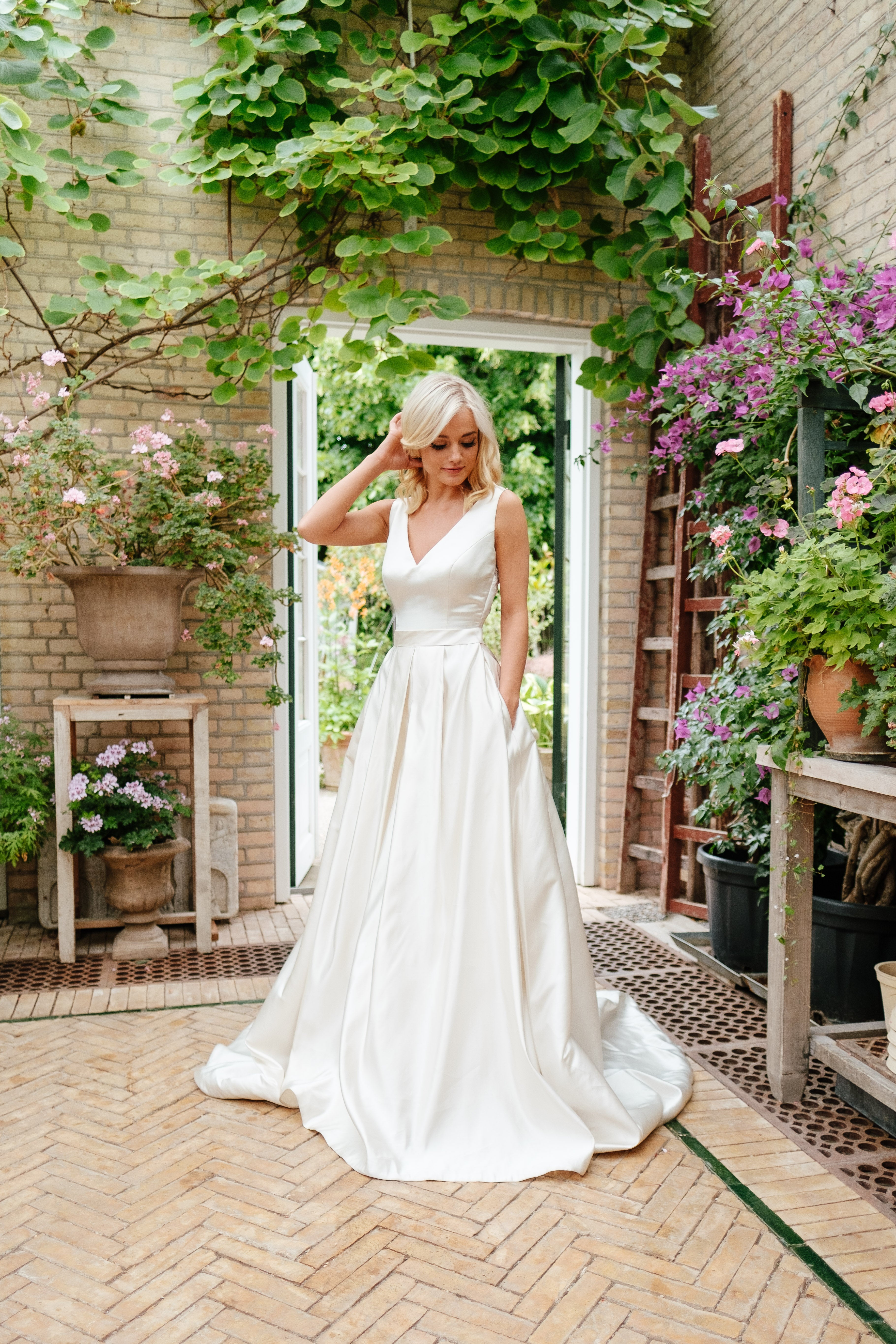 Book en fysisk aftale i vores butik her, hvor vores dygtige stylister kan hjælpe dig med at finde din drømmebrudekjole.