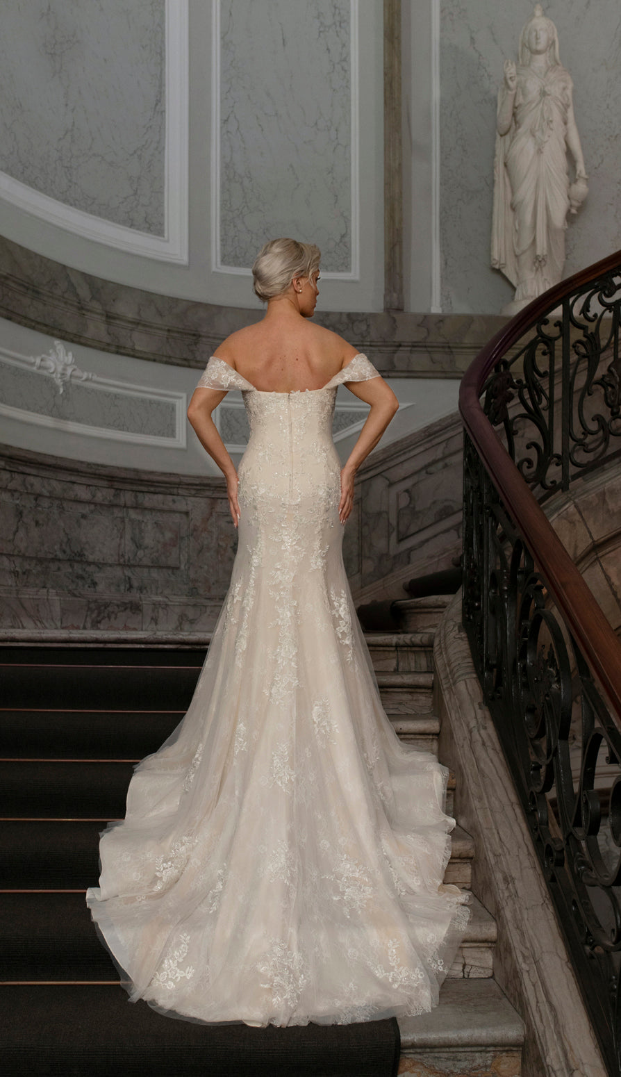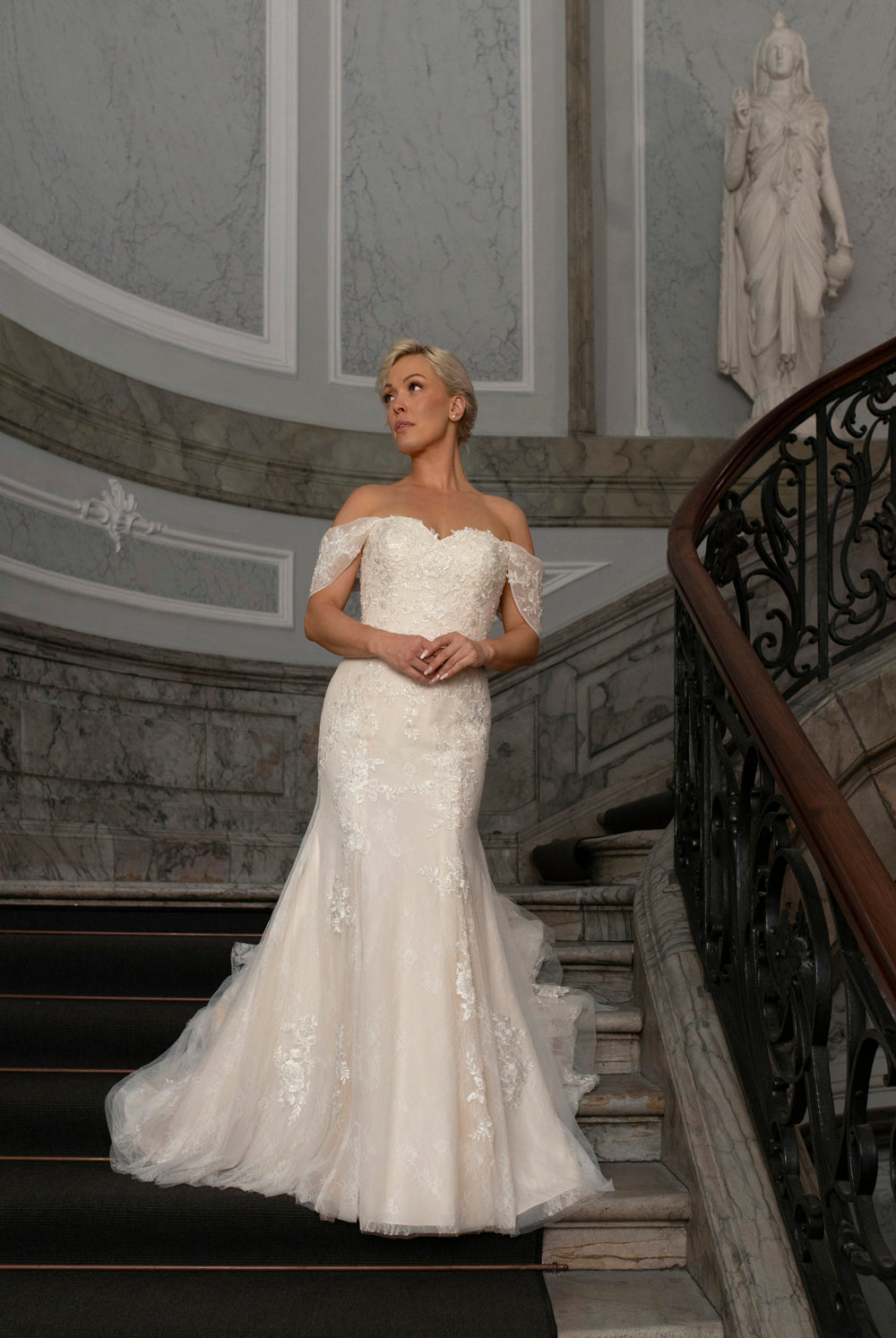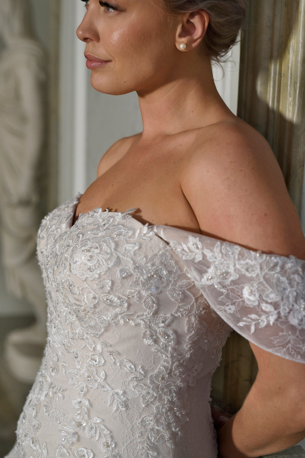 - Halsudskæring: Blød, romantisk udskæring med off-shoulder ærmer