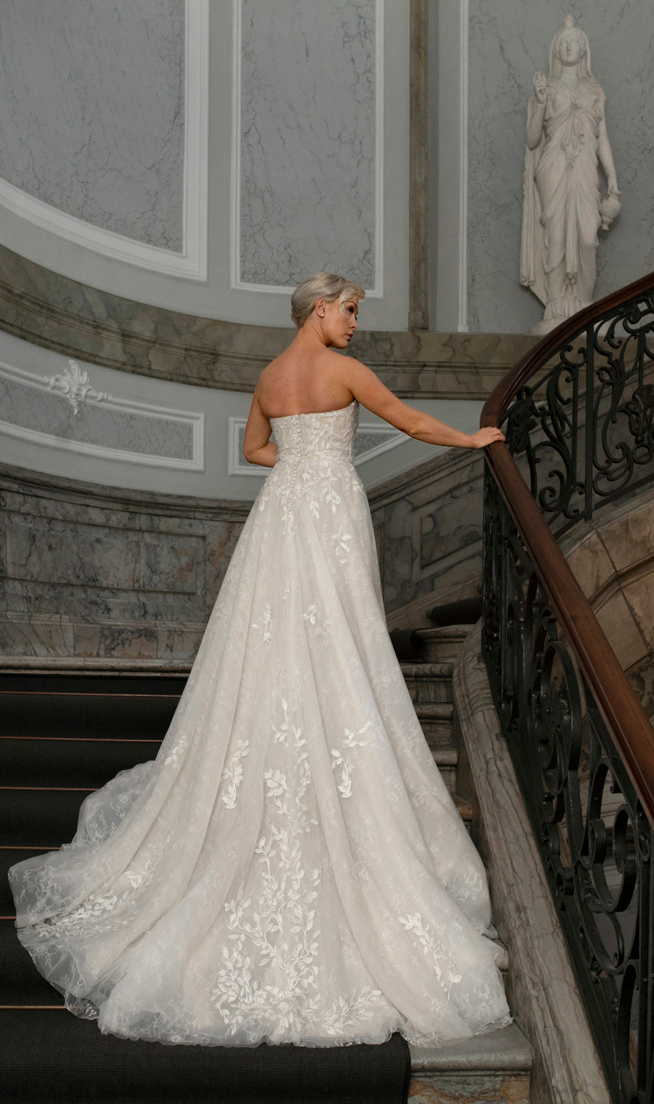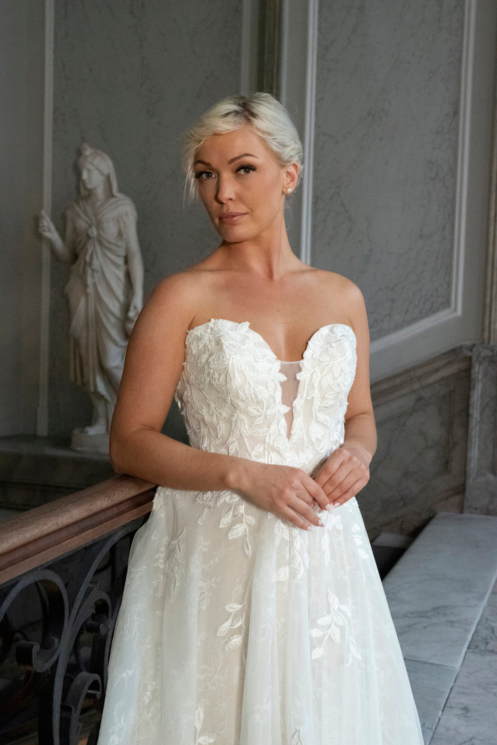 Ja, vi tilpasser halsudskæringen efter dine ønsker. Uanset om du foretrækker en dybere V-udskæring, en bådformet udskæring eller noget helt tredje, skaber vi din kjole med den ønskede udskæring fra starten.