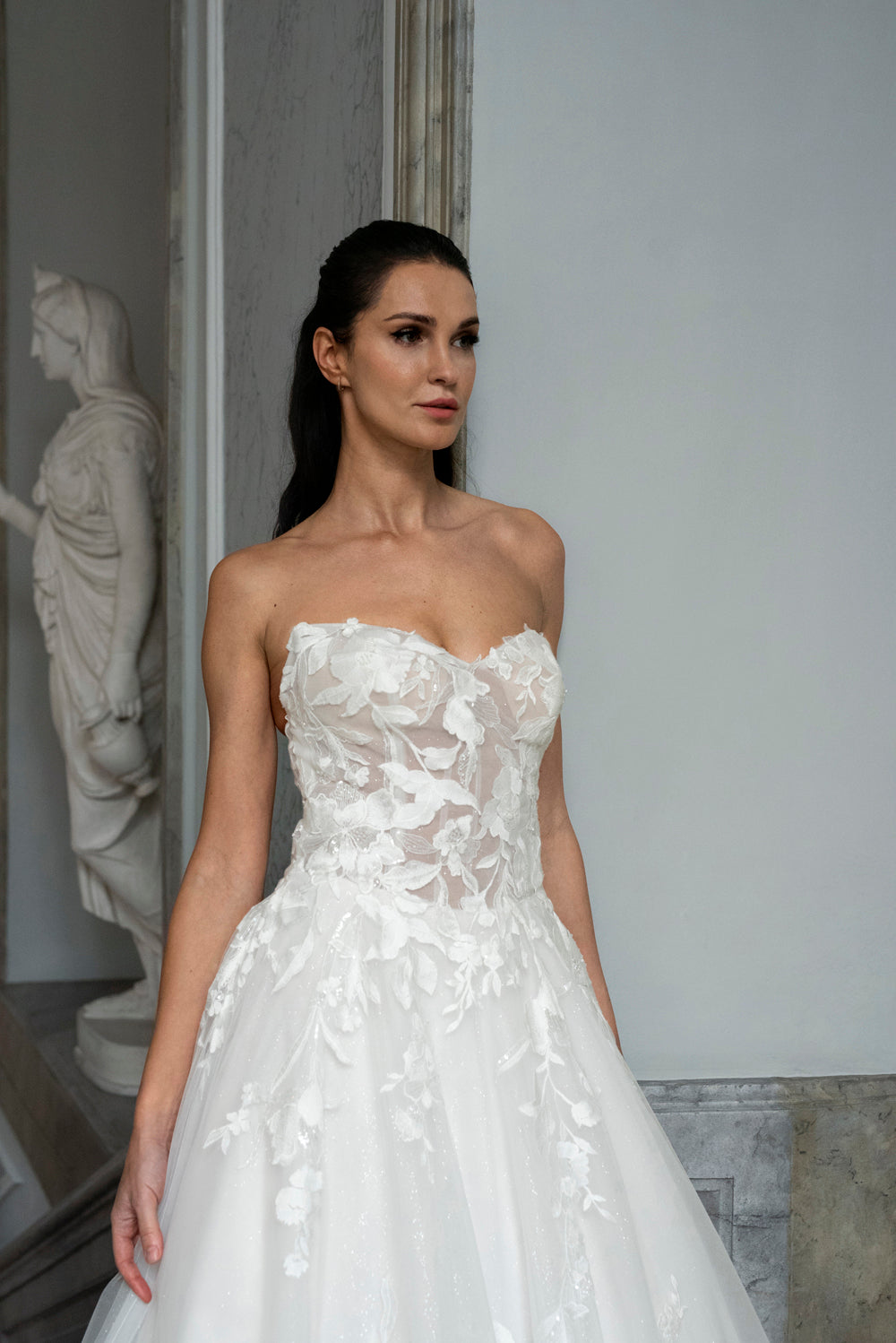 Ja, vi tilpasser halsudskæringen efter dine ønsker. Uanset om du foretrækker en dybere V-udskæring, en bådformet udskæring eller noget helt tredje, skaber vi din kjole med den ønskede udskæring fra starten.