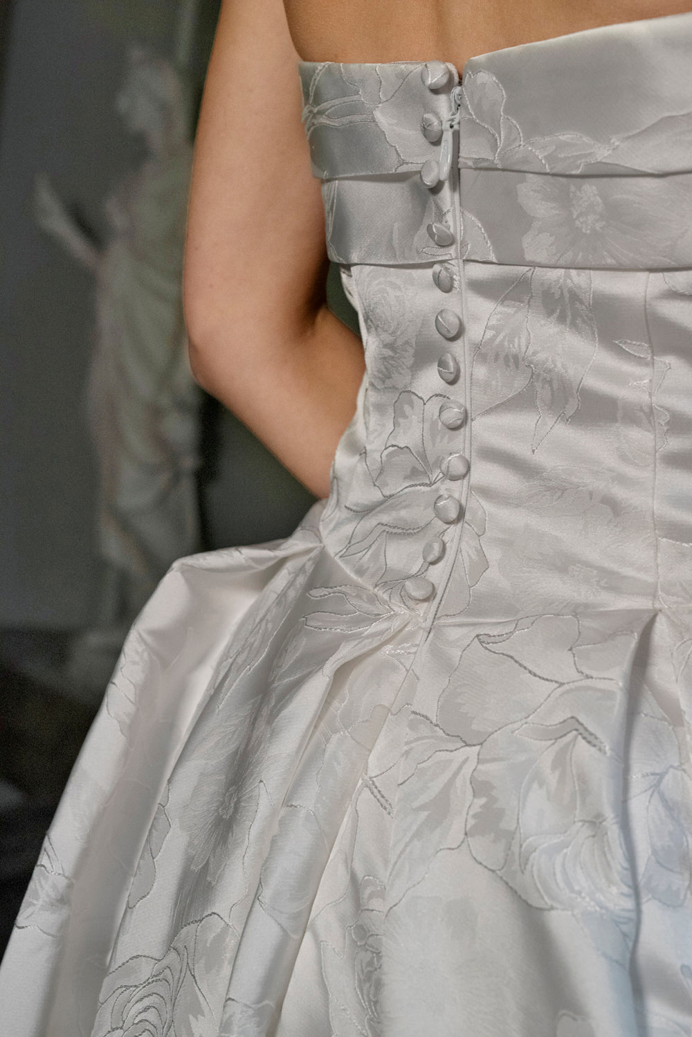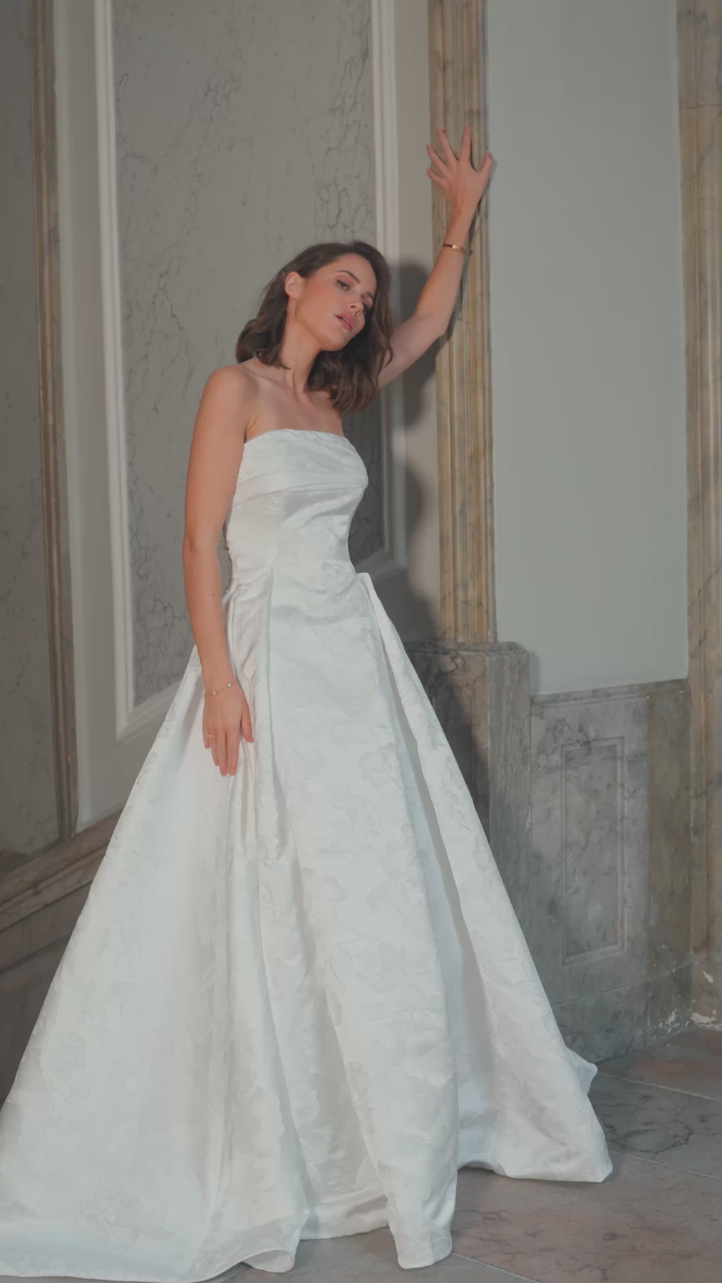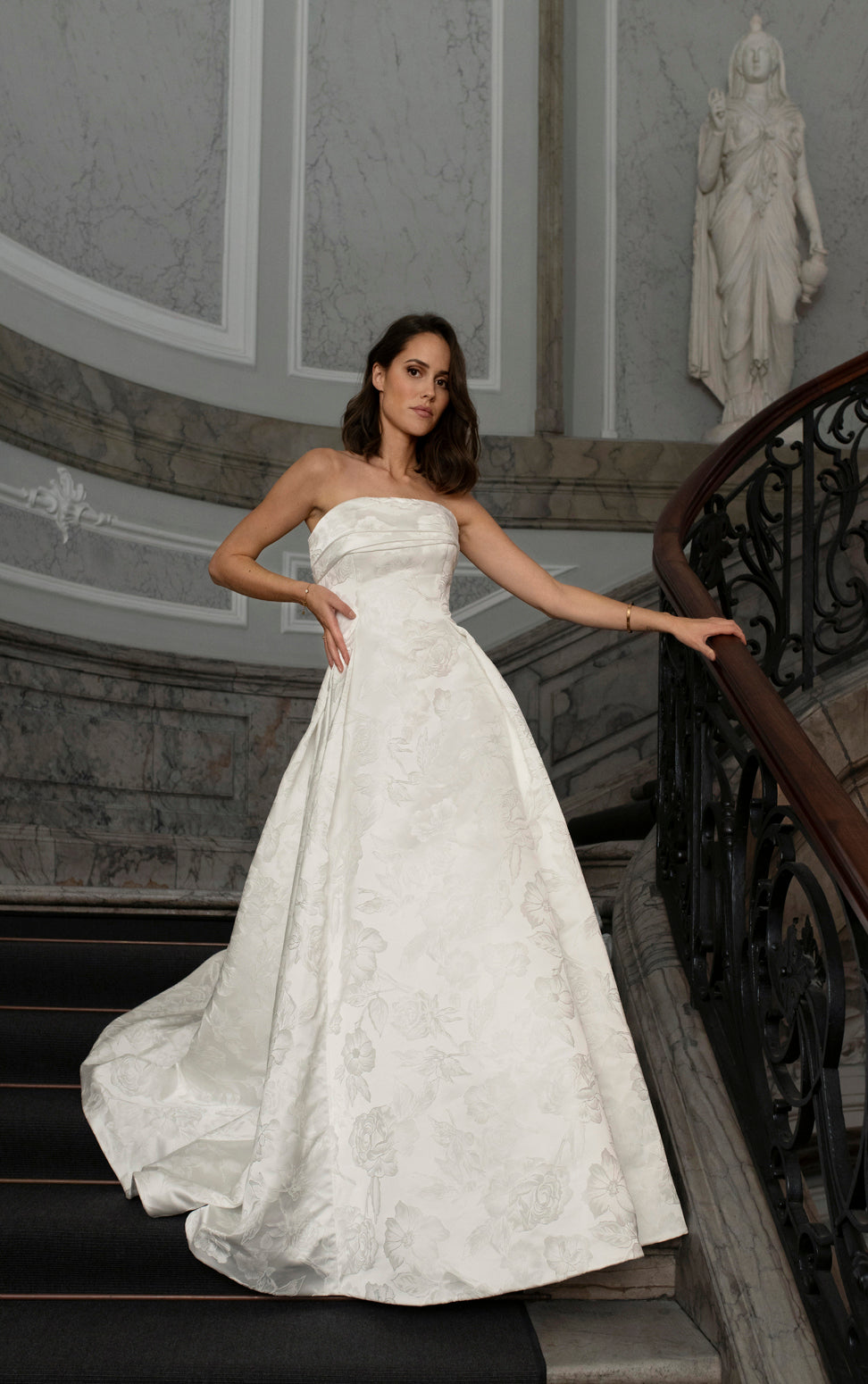 - Materiale: Satin-jacquard med diskret blomsterstruktur