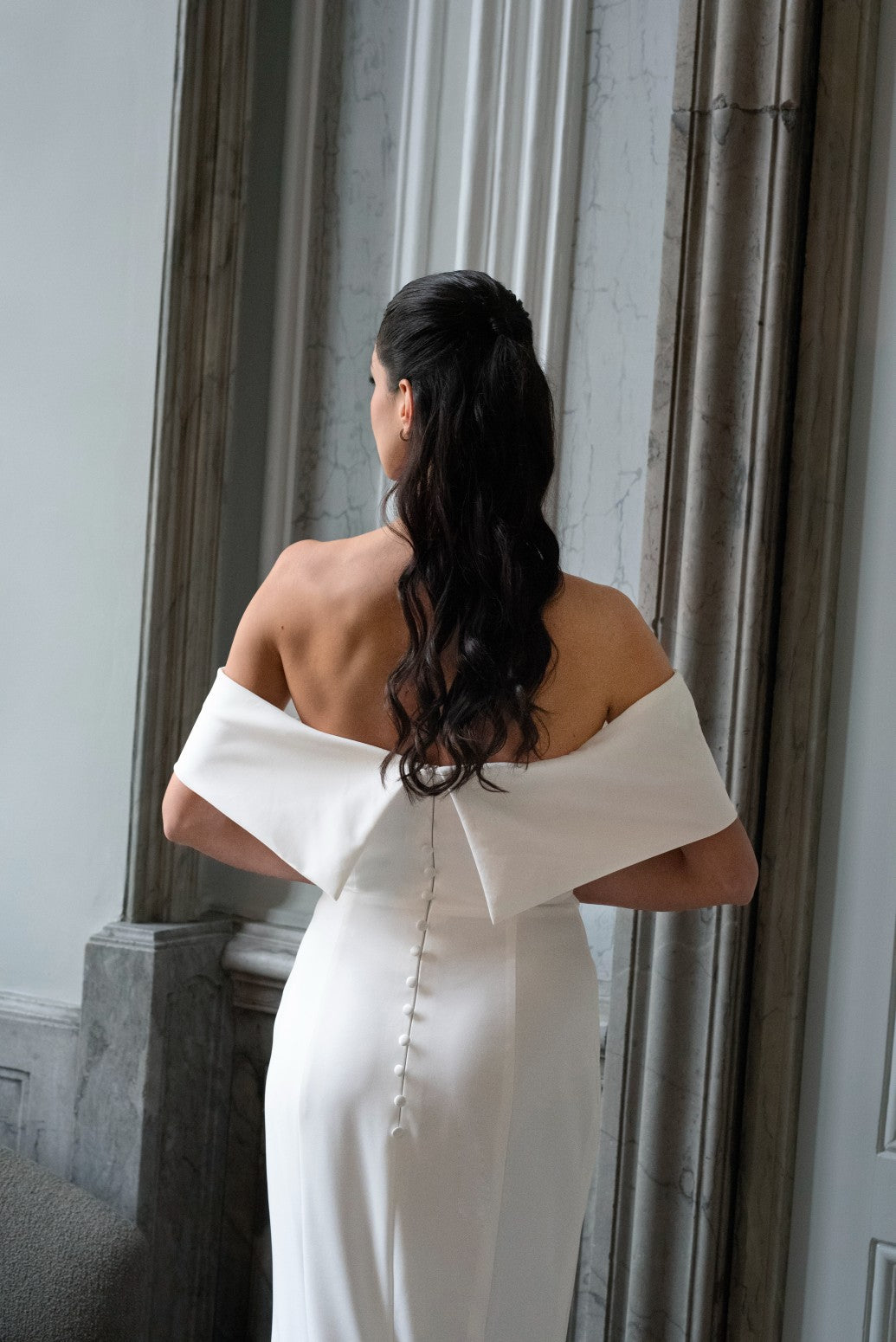 Book en fysisk aftale i vores butik her, hvor vores dygtige stylister kan hjælpe dig med at finde din drømmebrudekjole.