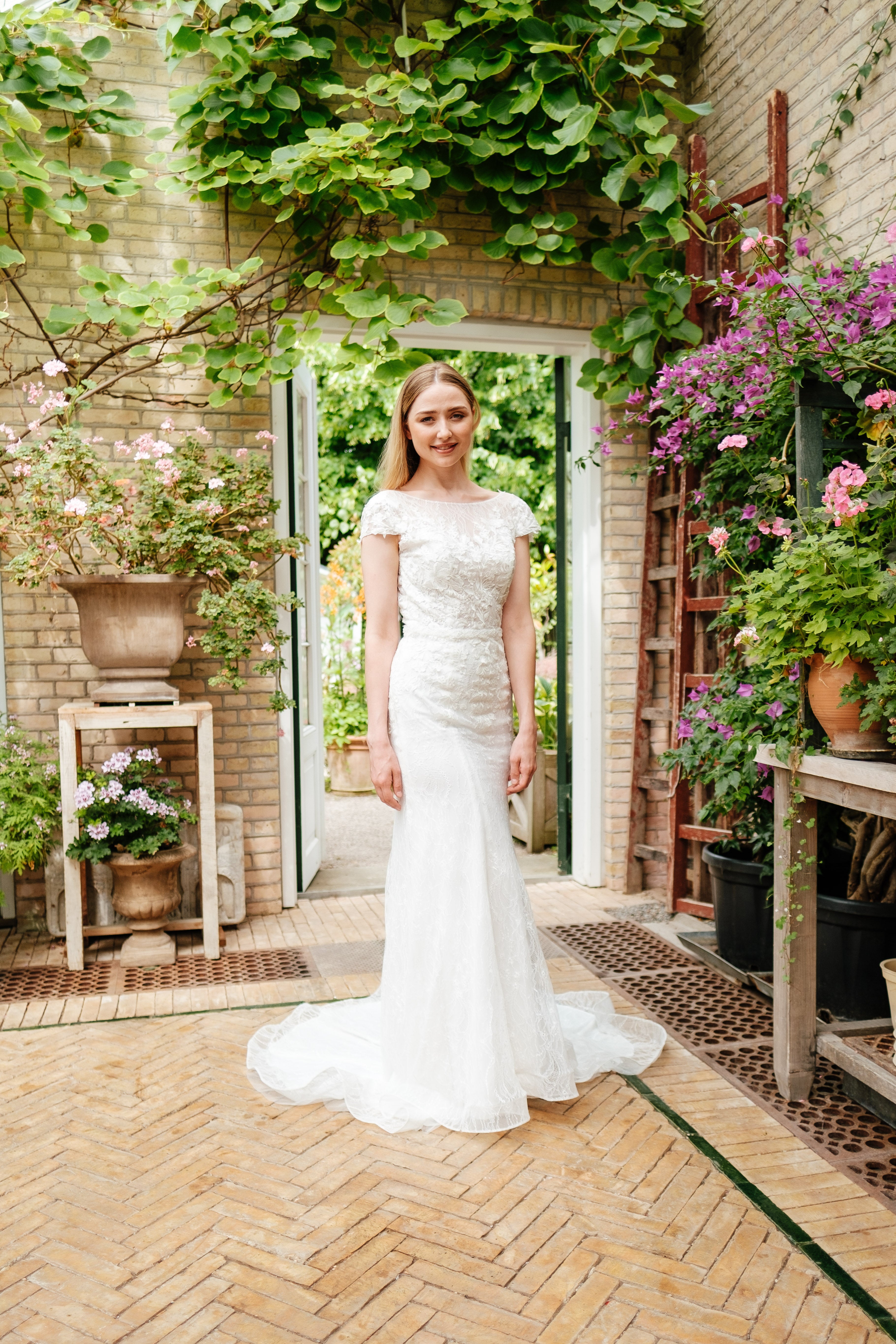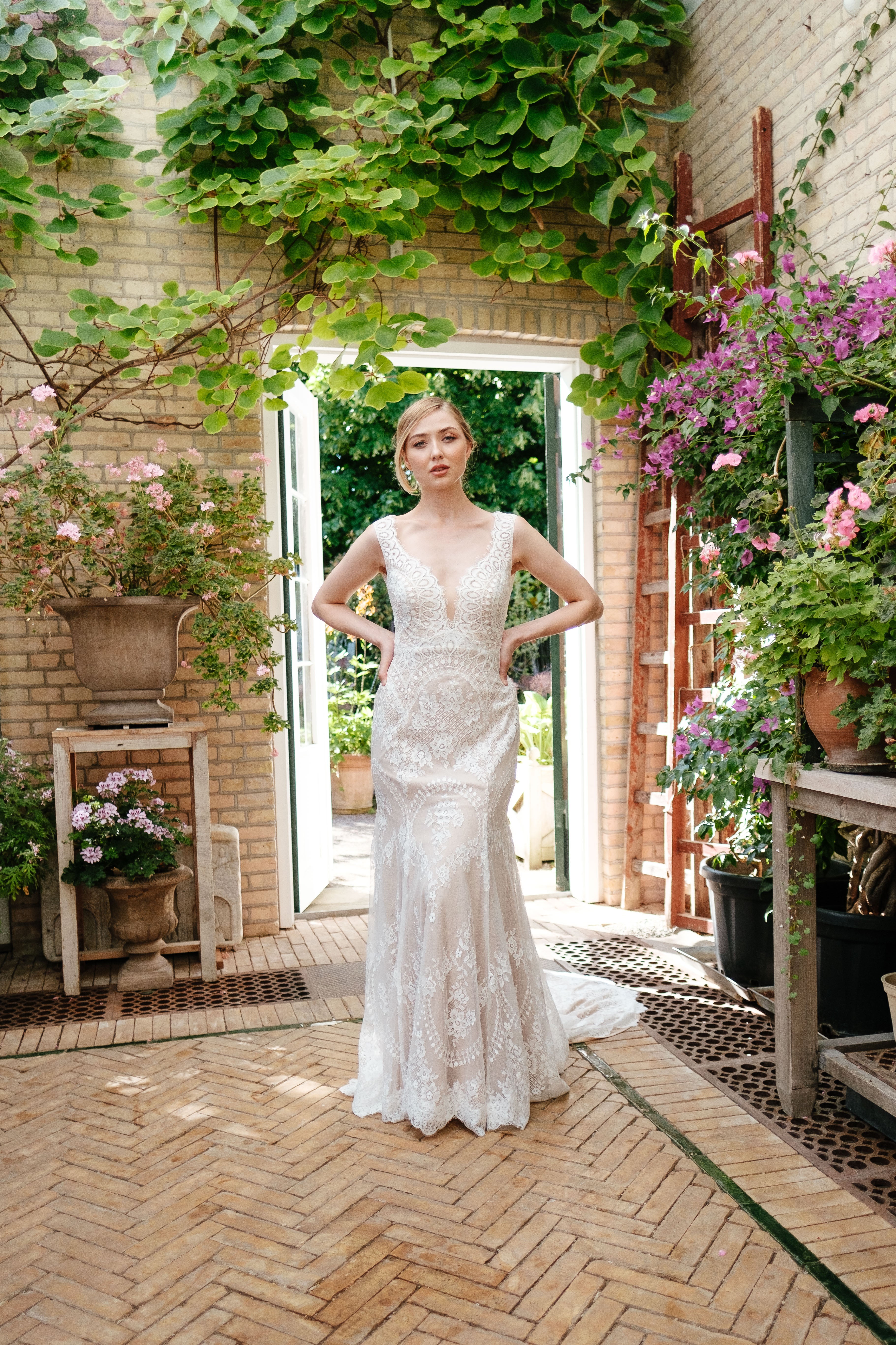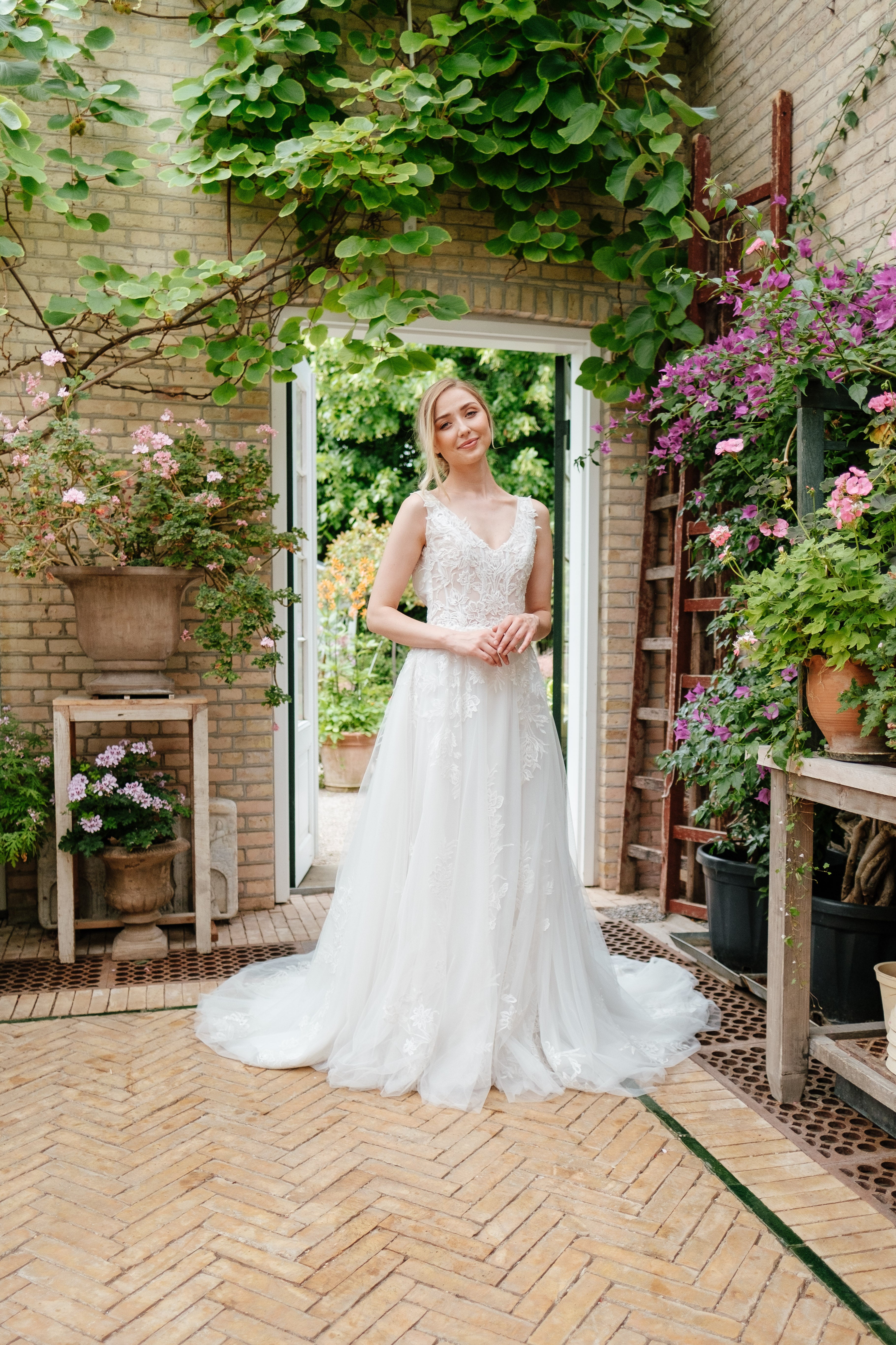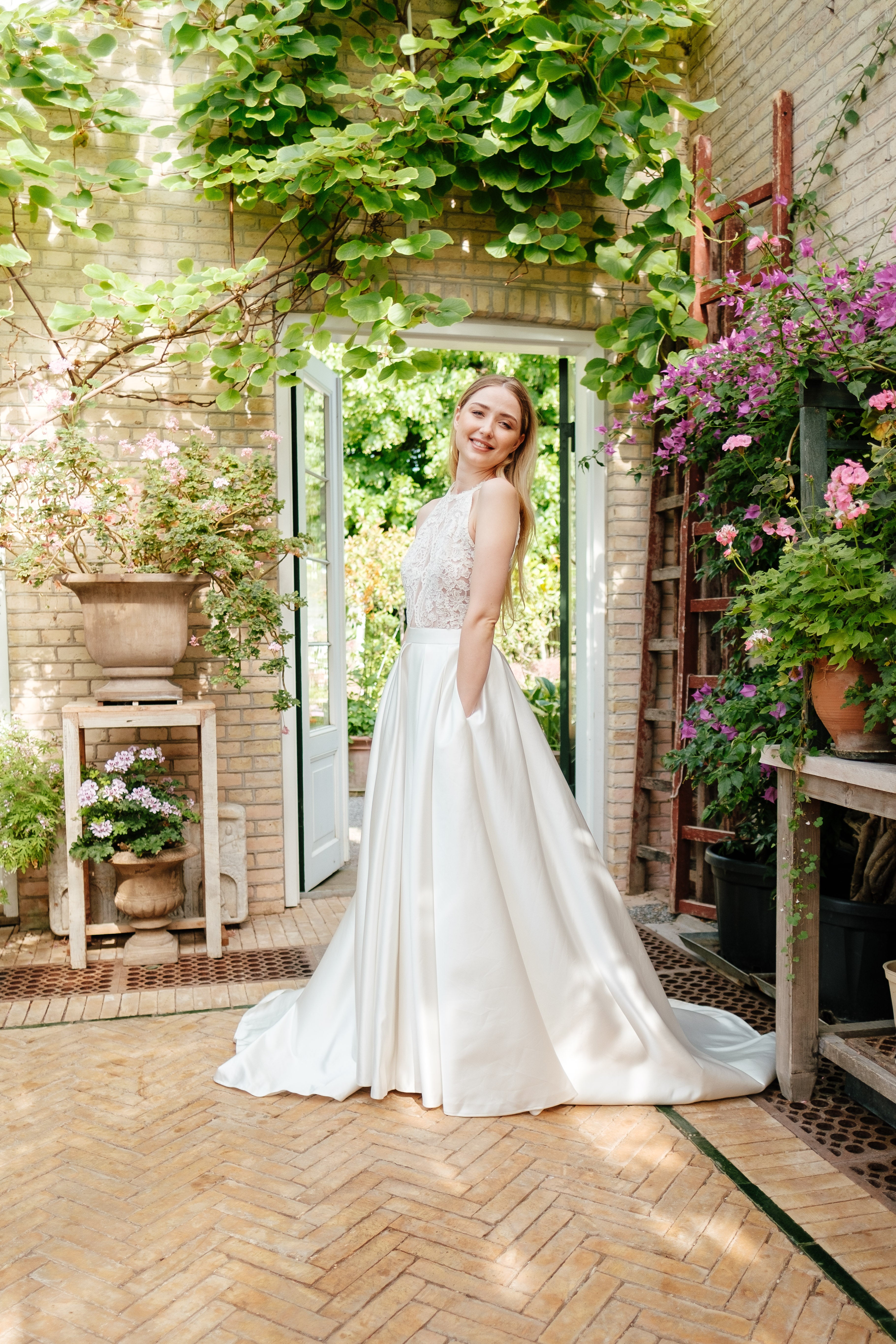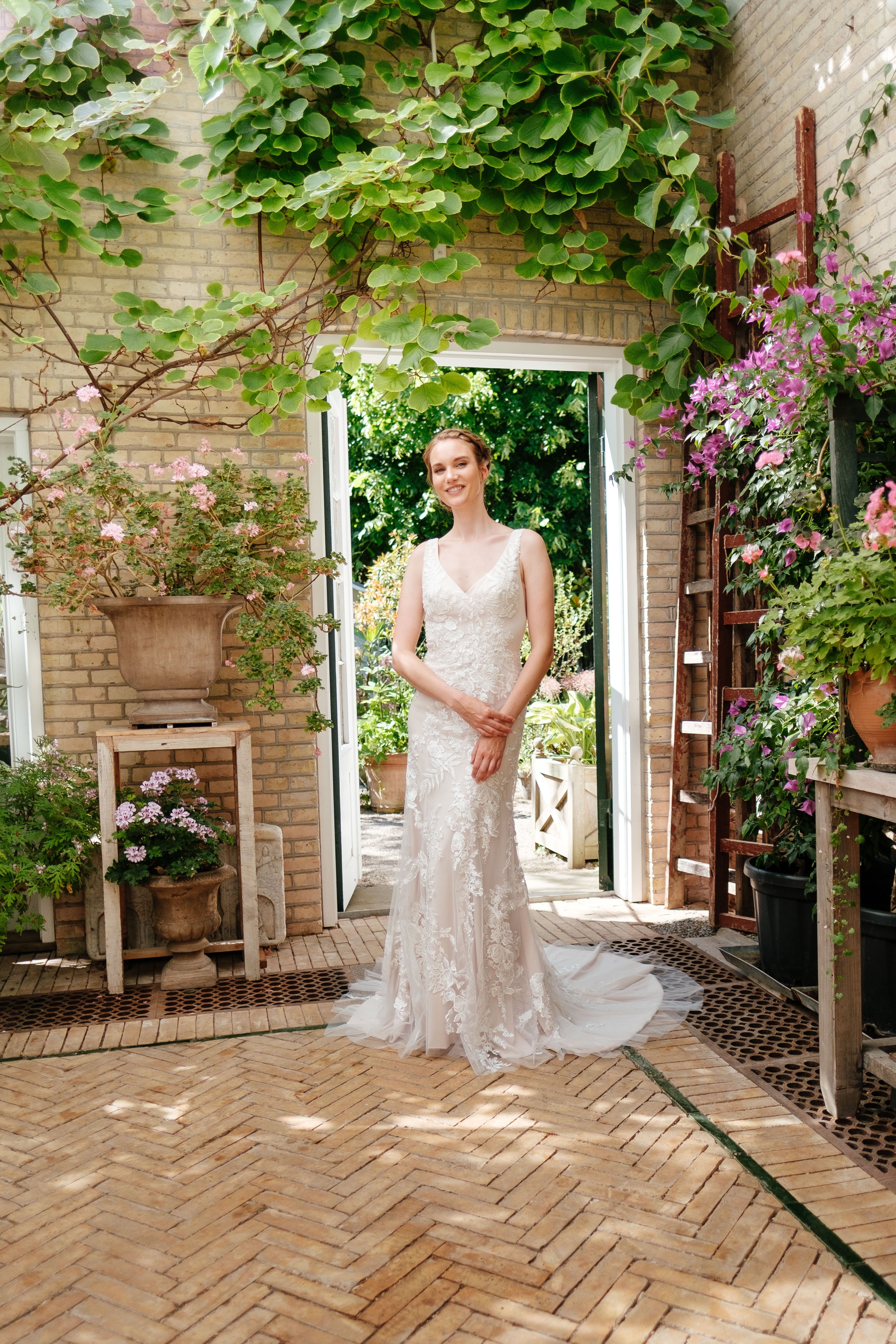Book en fysisk aftale i vores butik her, hvor vores dygtige stylister kan hjælpe dig med at finde din drømmebrudekjole.
