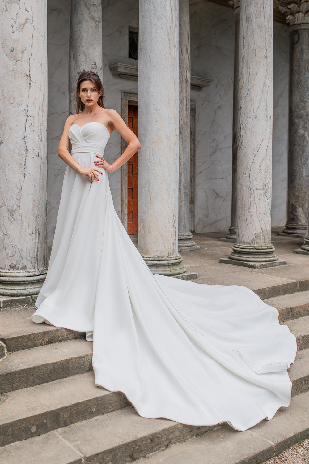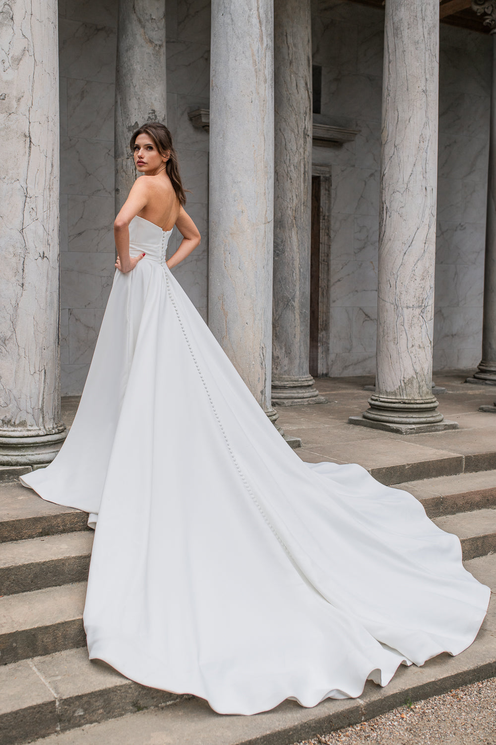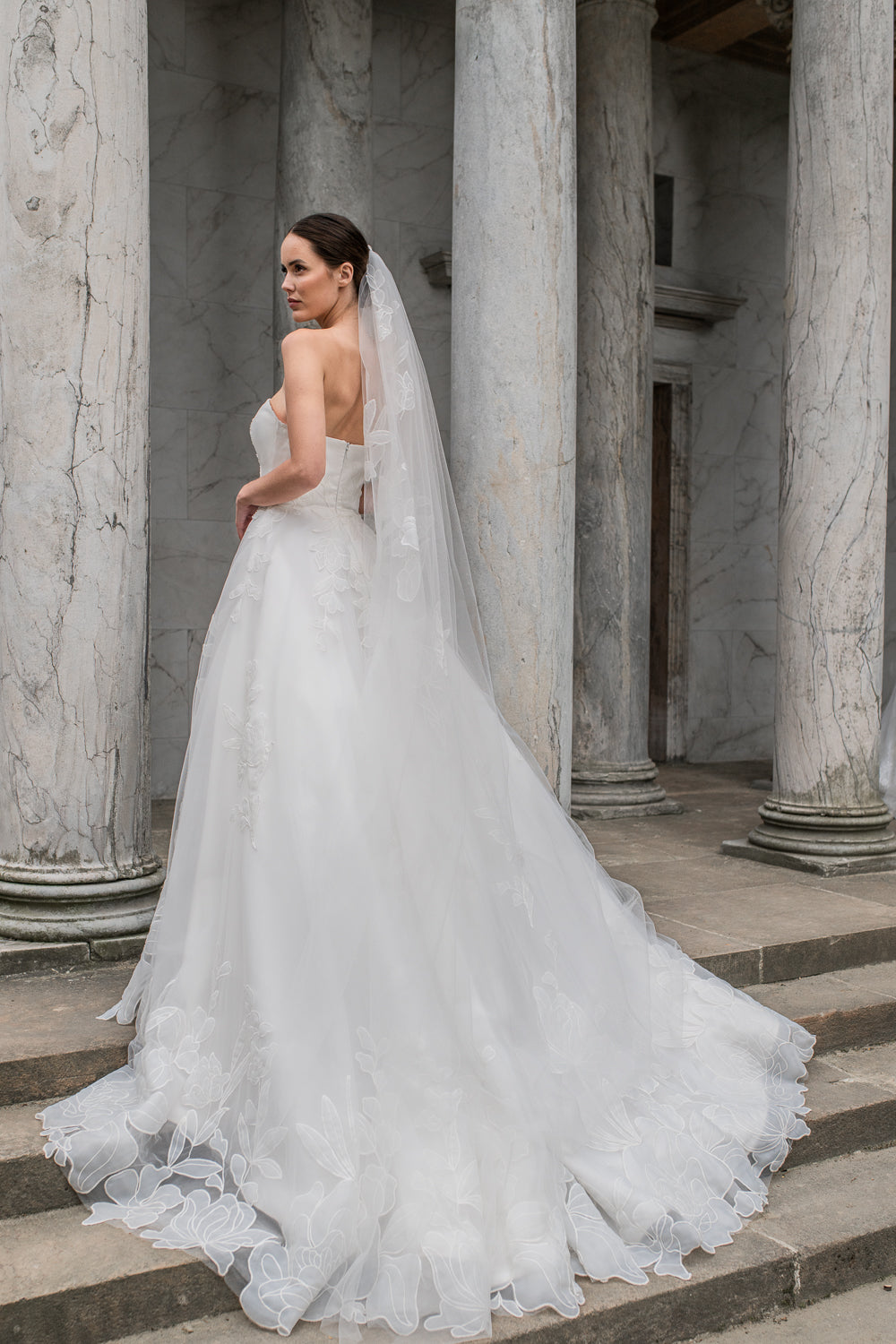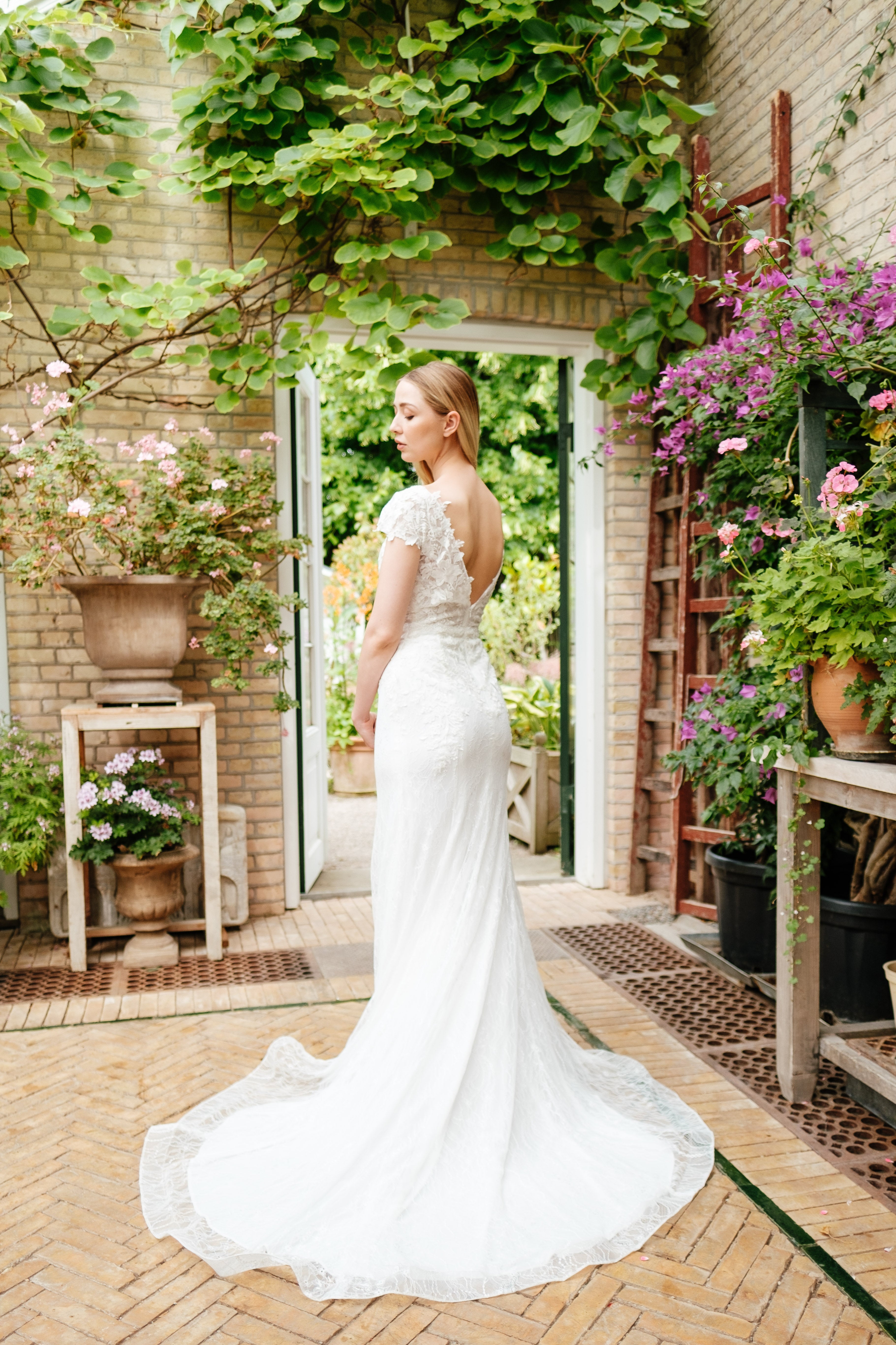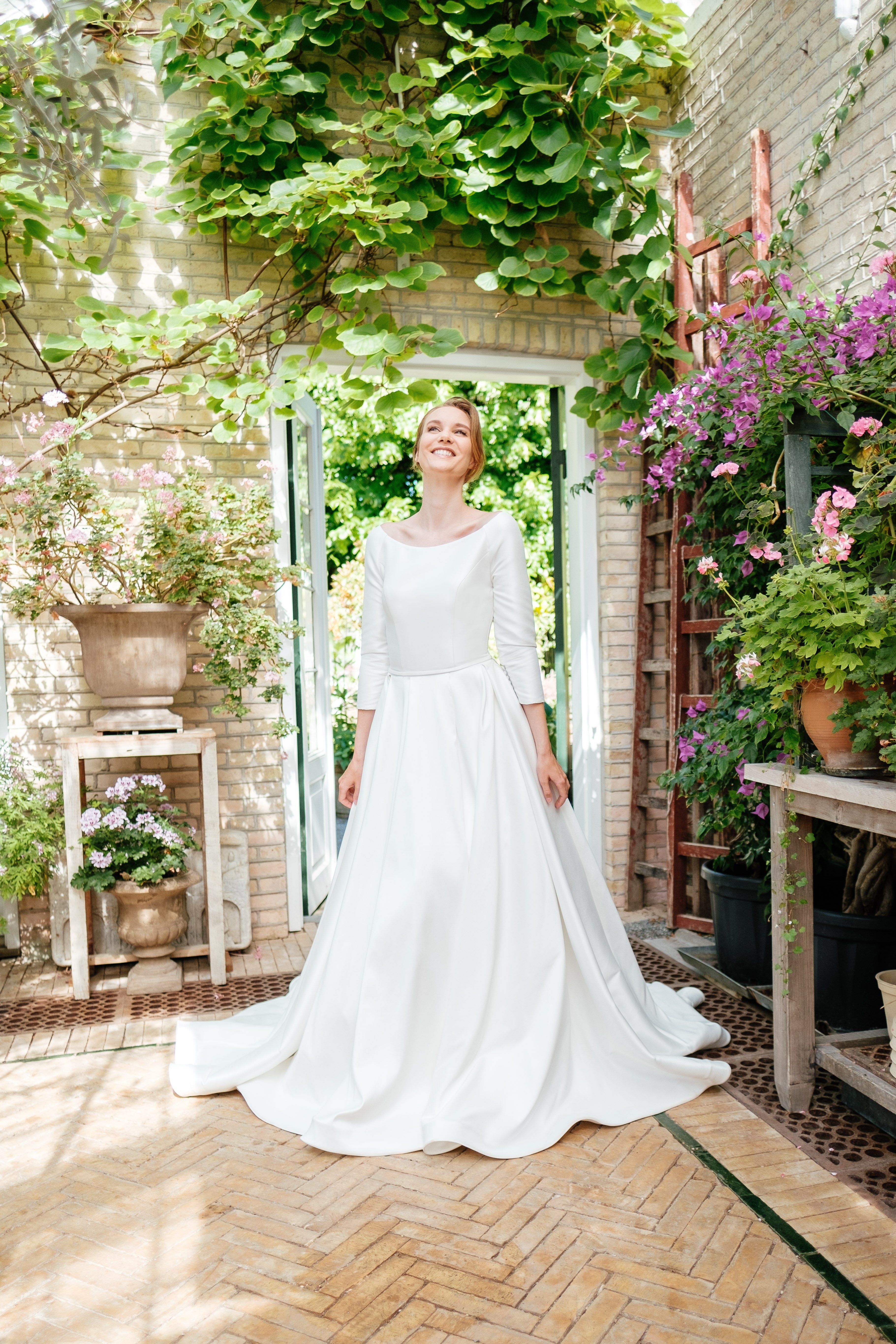 Book en fysisk aftale i vores butik her, hvor vores dygtige stylister kan hjælpe dig med at finde din drømmebrudekjole.